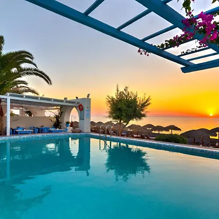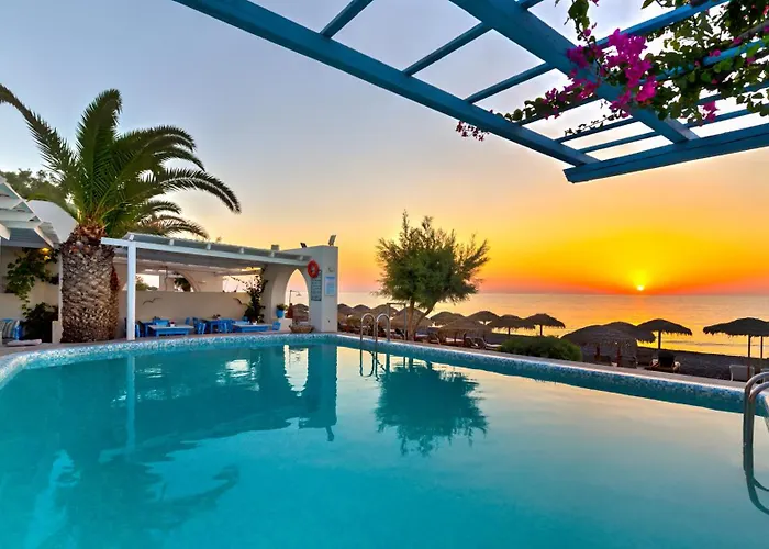 Konaklama tesisi, Kamári şehir merkezinden 1 km, Santorini Uluslararasi havalimanından 10 km uzaklıkta bulunur. Bu otel, özel plaja 1 dakikalık yürüme mesafesindedir. Kamari otobüs durağı çok yakın, 650 metre mesafededir.